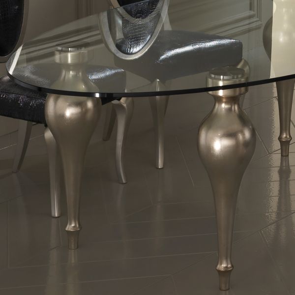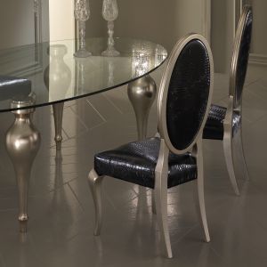 The Italian Designer Oval Glass Dining Table and Chairs Set is a gorgeous dining set that offers outstanding style. Of notable opulence, not only adding a touch of glamour to any setting but also creating a dramatic dining experience. Above all truly perf