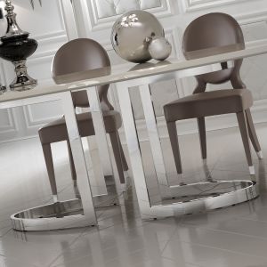 The High End Oval Designer Dining Table Set, for intimate evening suppers this gorgeous dining set offers outstanding style and comfort providing the ultimate sophisticated dining experience. A stylish contemporary table with a high gloss taupe lacquered