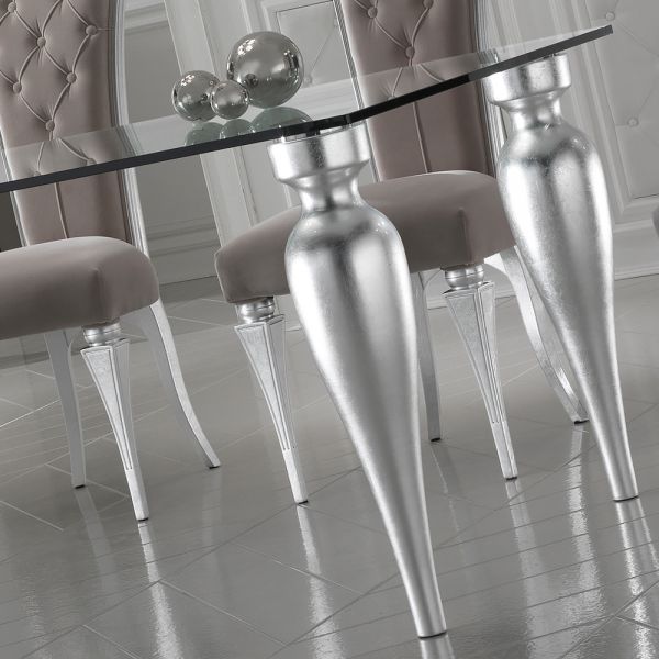 The High End Italian Designer Glass Rectangular Dining Table Set is a gorgeous dining set that offers outstanding style. Of notable opulence, not only adding a touch of glamour to any setting but also creating a dramatic dining experience. Above all truly