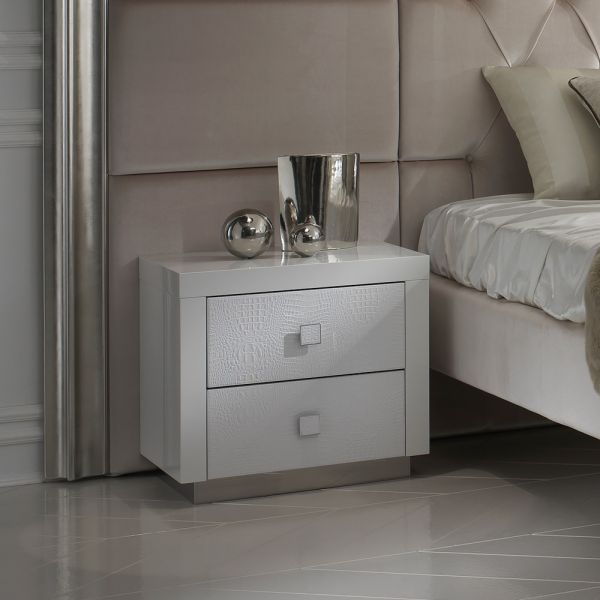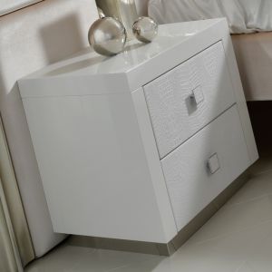 The Alligator Embossed Pattern Leather White Bedside Table is the most stunning piece of contemporary design. Truly versatile. Use as a bedside table as shown, modern side table or as a welcome in any hallway. Adding contemporary style and sophistication