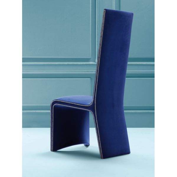 World class Dramatic high backed studded velvet chair shown here in our deep blue velvet with intricate stud detail but available to order in various fabrics and with customers own fabric.?