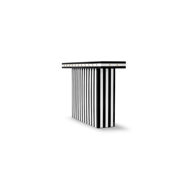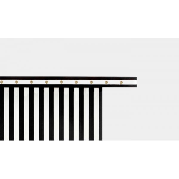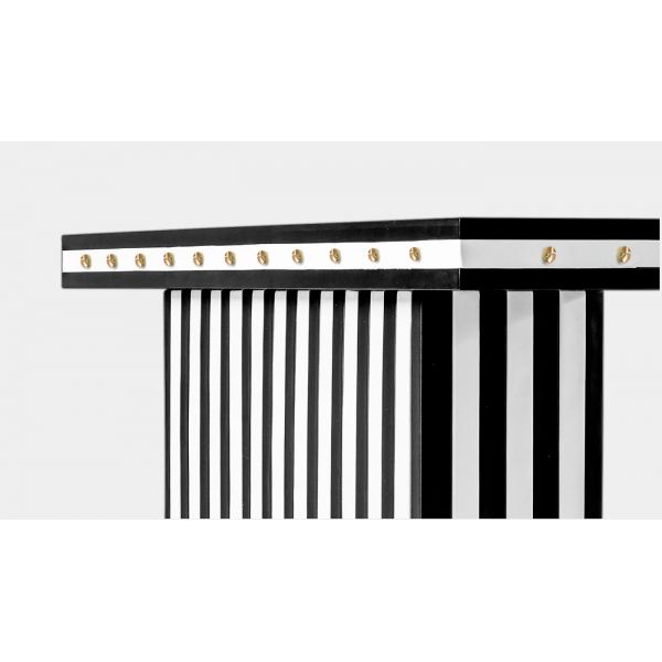 Console top: Black stained ashwood Structure: Beige and black genuine leather Details: Brass nails