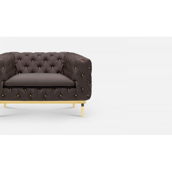 Upholstery: Genuine leather or cotton velvet Structure: Pinewood Base: Polished brass Details: Polished brass nails