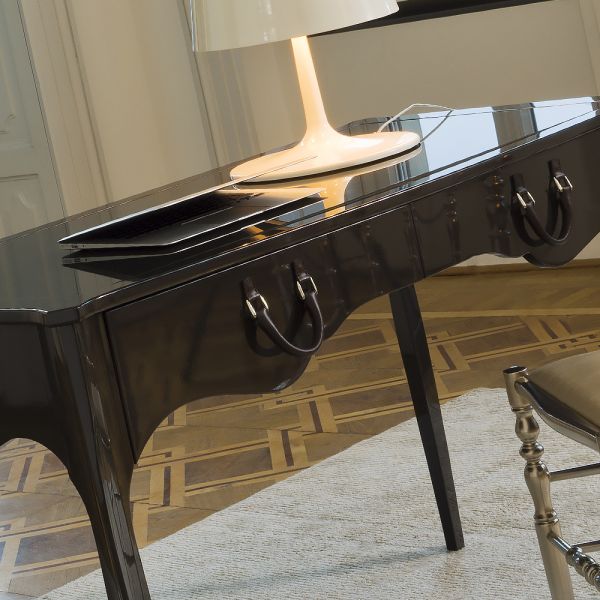 Elegant Italian Lacquered Writing Desk. The simple elegance of this writing desk is accentuated by the use of fabulous attention to detail. Combining modern design techniques with traditional master craftsmanship. The main structure is solid beechwood wit